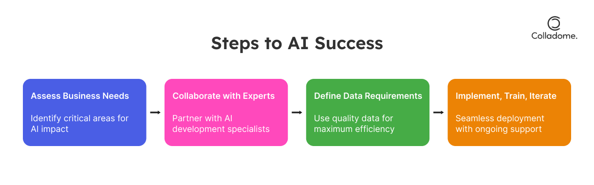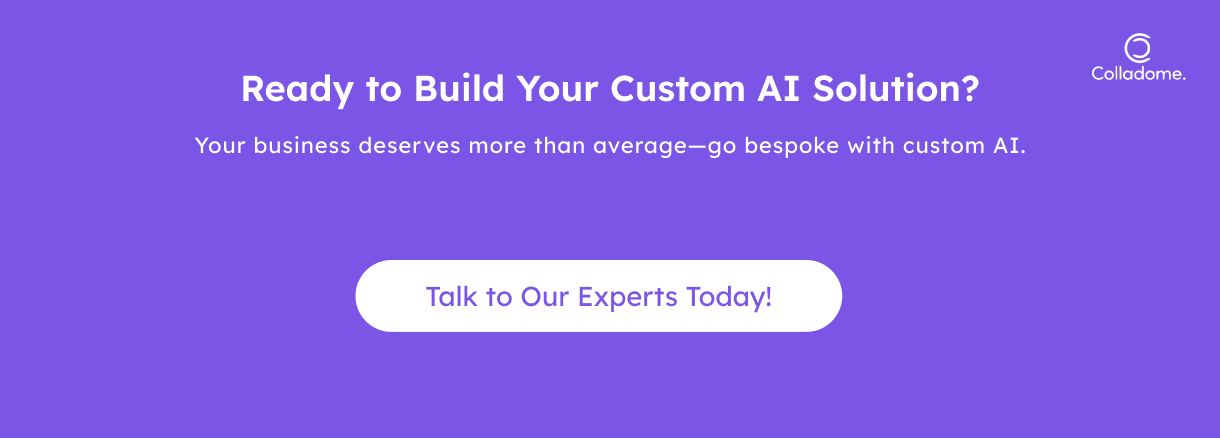 Contact us today for a free consultation, and let’s start building an AI solution that’s as unique as your goals. With Colladome, you’re not just adopting technology—you’re creating the future of your business.