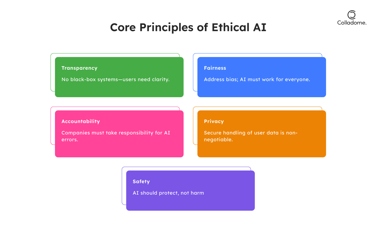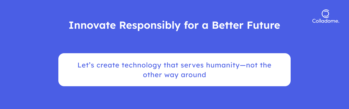At Colladome, we live and breathe this approach. We believe that ethical AI isn’t just a checkbox for our projects; it’s the compass that guides us as we create solutions that empower businesses, governments, and communities alike. Our POV? Innovation without responsibility is a fast track to disaster, but when done right, AI innovation can be a force for good—transformative, inclusive, and truly game-changing.