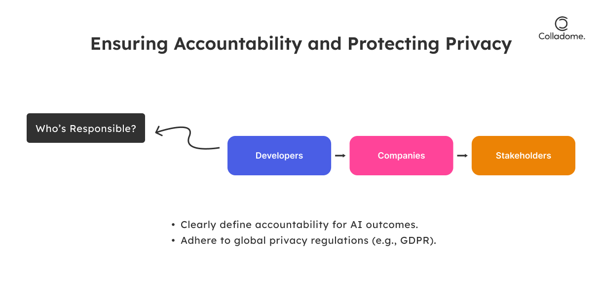 - When something goes wrong with an AI system, accountability kicks in. Developers and companies must take responsibility for the outcomes of their AI tools.