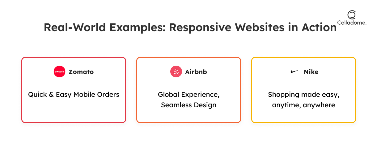 Zomato’s responsive web design is a prime example of mobile-first thinking. As a food delivery giant, they’ve made sure that their website is mobile-friendly and SEO optimized, offering users a seamless experience across all devices. Whether you’re browsing on a 6-inch phone or a 13-inch tablet, Zomato’s adaptive design ensures quick load times and easy navigation. This, in turn, helps them retain more users and reduce bounce rates, making them a leader in the competitive food delivery space. Zomato’s quick and easy-to-navigate platform keeps hungry users coming back for more—one-click ordering at its finest.