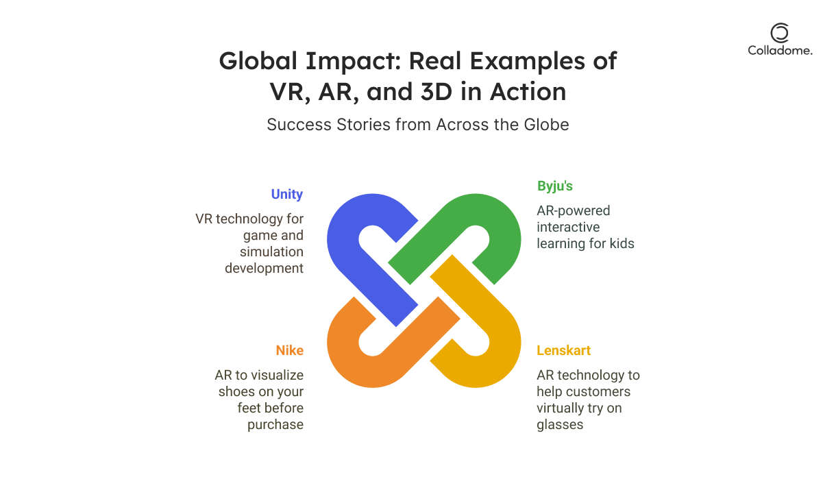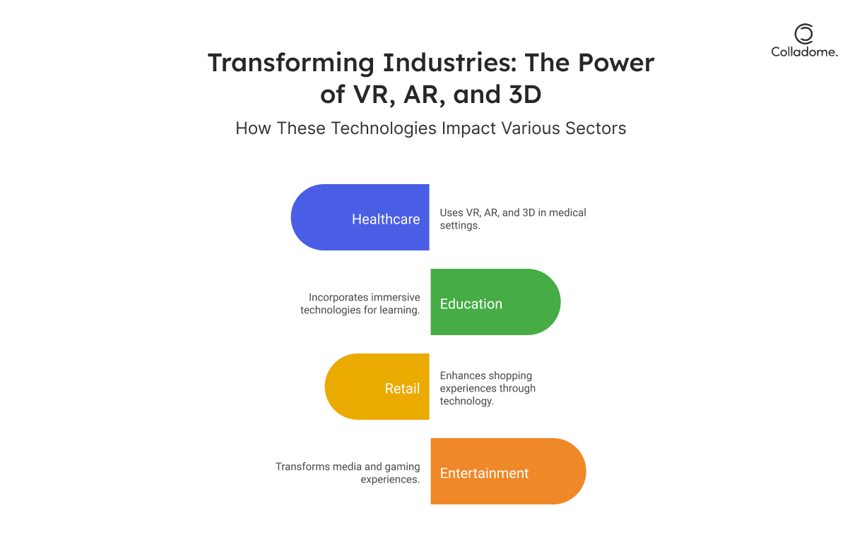 - VR, AR, and 3D solutions are transforming industries from education to retail.