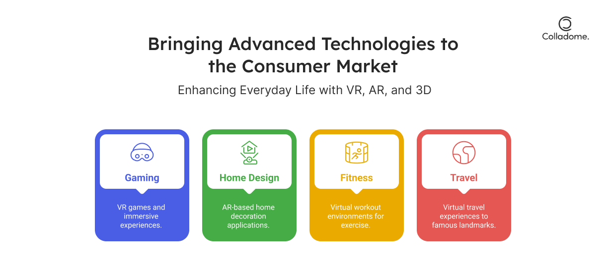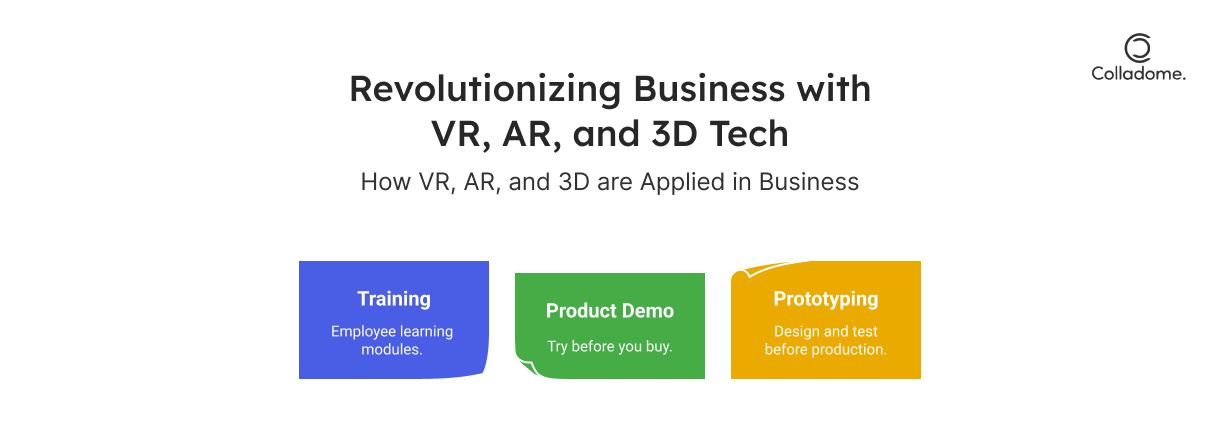 Virtual reality, augmented reality, and 3D reality solutions aren’t just the latest trends—they’re game-changers. These technologies are revolutionizing industries, from education and healthcare to retail and entertainment, creating opportunities that were once the stuff of science fiction. We’re no longer talking about futuristic fantasies; we’re talking about real-world applications that are driving tangible results. Whether it’s enhancing customer experiences, improving training programs, or optimizing operations, VR, AR, and 3D solutions are the tools shaping the future. At Colladome, we see these technologies as a powerful force for driving innovation and efficiency. Imagine the possibilities—immersive customer journeys, data-driven decisions, and smarter processes—all powered by cutting-edge immersive tech.