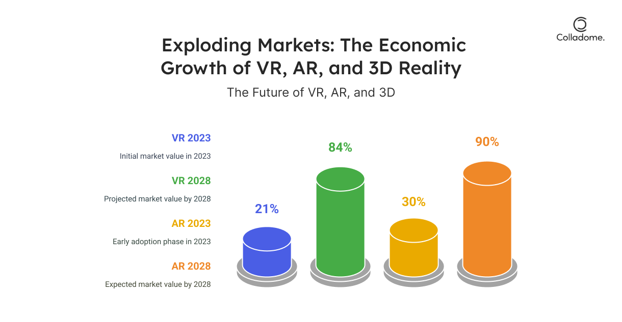 - VR Market Growth: The global VR market is projected to grow from $21 billion in 2023 to $84 billion by 2028. (source)