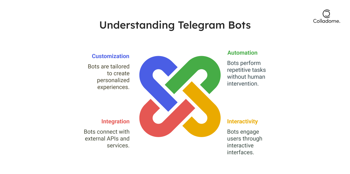 - Interactivity: They can engage users through interactive interfaces, including custom keyboards, inline buttons, and forms, enhancing user experience.