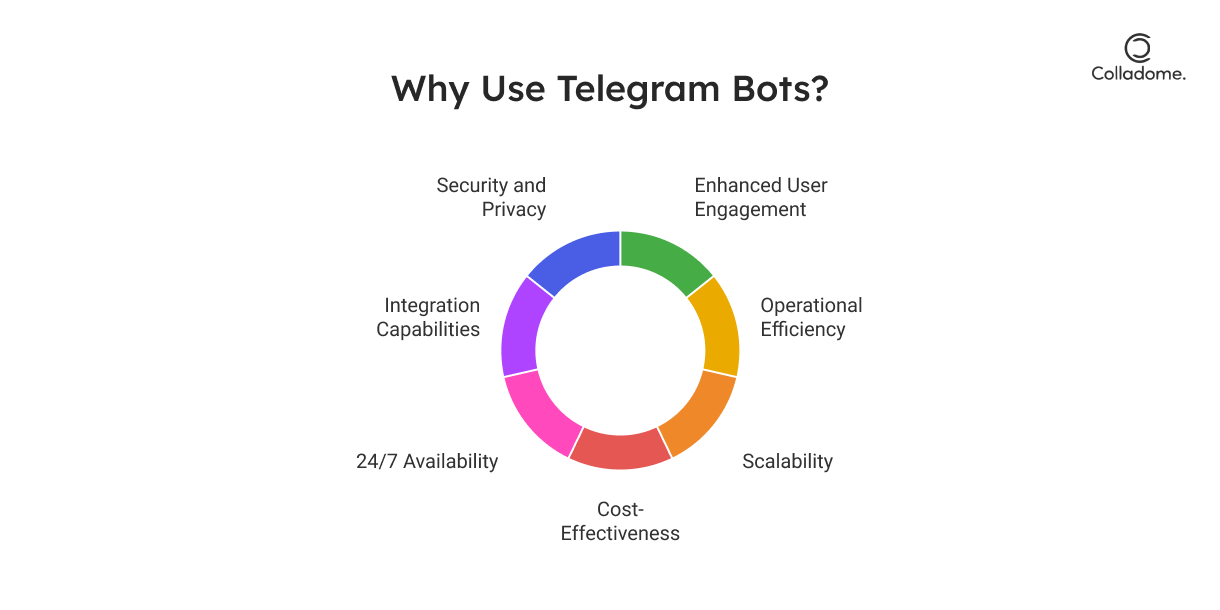 - Operational Efficiency: Telegram bots automate repetitive tasks, reducing manual workload and increasing productivity.